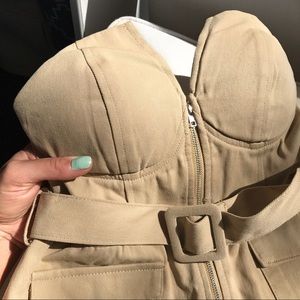 — super cute for everyday in spring & summer. Features: buckle belt, padded cups, front silver zipper closure —
