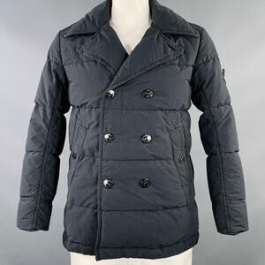 STONE ISLAND Size L Black Cotton Blend Double Breasted Coat