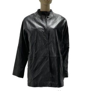 STONE MOUNTAIN Womens Black Leather Button-Up Jacket Size M