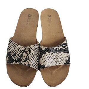 STONE Mountain Leather Snake Print Platform Slides 8M Cream Tan Black EUC