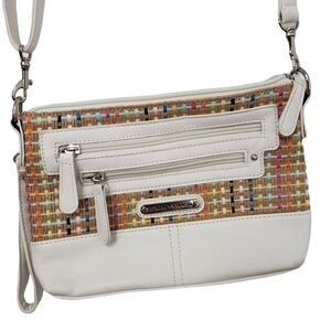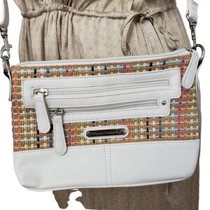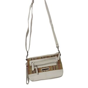 STONE Mountain NWOT Crossbody Wristlet Adjustable Strap White and Tan Woven