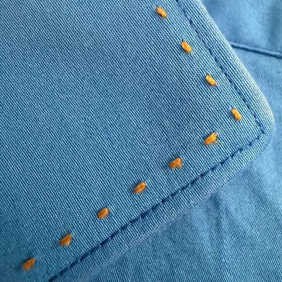 STONE ROSE Red Rivet Collection Blue Button Up Shirt Contrast Cuff | Large