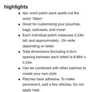 Brand new in the package adhesive patches to customize your SCL bags and items. Glitter outline.