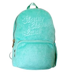 Brand New Terry Cloth Logo Embossed Backpack from Stoney Clover Lane For Target. This Backpack offers a pop of a playful color in Light Turquoise Green. Complimented by the soft Terry Cloth textured fabric and an embossed logo at front. Roomy main compartment, Gold zippered exterior pocket and a side pocket ensures space for all your needs. Adjustable back straps. One Size,