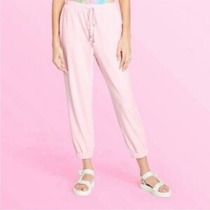 STONEY CLOVER Womens Terrycloth Jogger Set Pink Cropped Size M/L Limited Edition