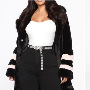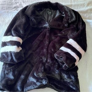 STOOSH Women’s Faux Fur Varsity Stripe Midi Black Coat