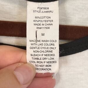 STOP STRESSIN' MEOWT Top Womens M Graphic Cat Lover Raglan Elbow Baseball White