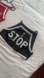 Black and white sequins STOP sign logo
