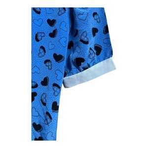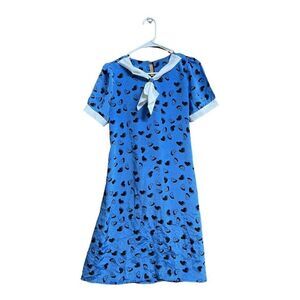 Vintage made in the USA sailor hearts blue & black collard dress size small in good used condition beautiful pattern light cotton feels like satin measurements in photos