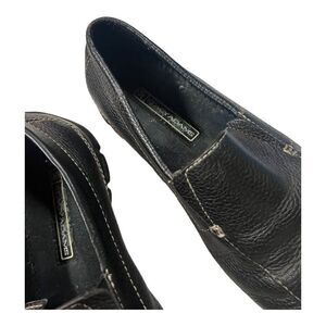 Stacy Adams APEX Black Slide On Milled Leather Loafer Men's Shoes size 9 1/2 in good used condition normal wear and some toe wear see photos