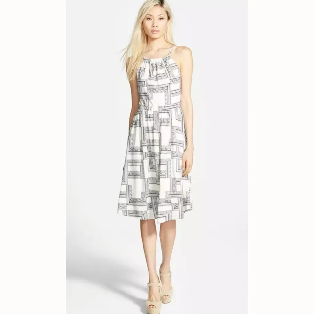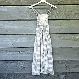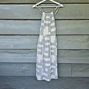Grecian Greek Key Midi Sundress White Navy sz S Women's