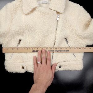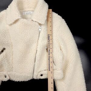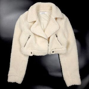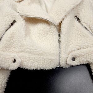 STORETS Katrina Sherpa Cropped Teddy Jacket Moto Faux Fur Cream 90s Y2k Medium