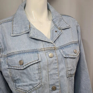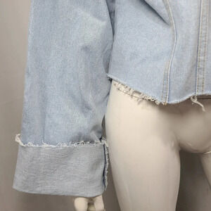 STORETS Light Wash Raw Hem Cropped Denim Jacket Oversize Balloon Sleeve Size S/M