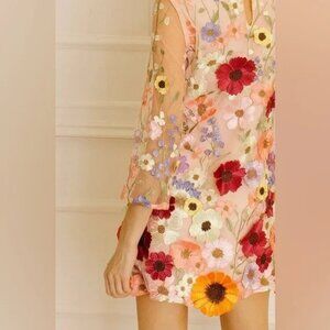 storia dress, 3d floral applique, embroidered mesh dress, floral mini dress, sheer sleeve dress, romantic floral, garden party outfit, whimsical fashion, spring wedding guest dress, floral overlay, pastel floral dress, ethereal style, boho chic, feminine fashion, floral illusion dress, festival style, cottagecore aesthetic, girly glam, colorful floral embroidery, statement floral piece, sheer floral mini, spring fashion, resort wear, date night dress, luxury boutique dress, flirty floral mini, flower applique mesh dress, vintage inspired floral look
