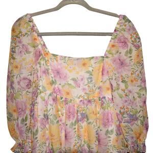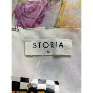 STORIA $88 Ivory Floral Shimmer Chiffon Square Neck Maxi Dress Medium