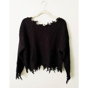 Destroyed, fringe, fringed, chunky, oversized, edgy, fashion, goth, crop