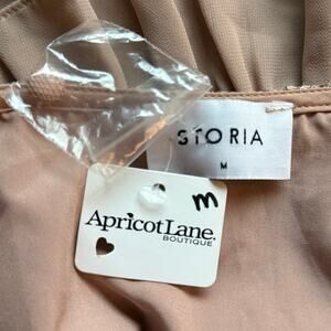 STORIA CROP DELICATE BOHO FLORAL EMBROIDERY LACE OVERLAY RUFFLE TAN MEDIUM