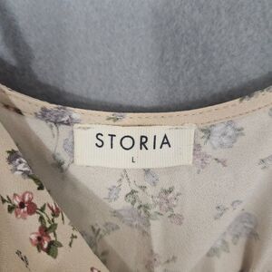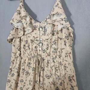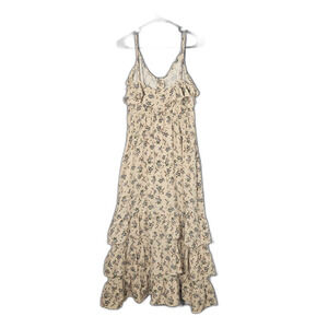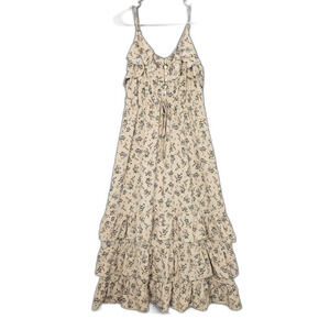 STORIA Cottage Maxi Dress Sz L Tiered Ruffles Floral Tiny Buttons Adj Straps