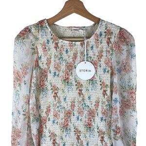 STORIA Floral Smocked Dress Long Sleeve Size Small New