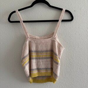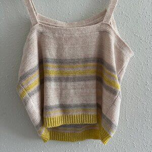 Add a pop of color to your summer wardrobe with this cute Storia knit tank! Features soft pink, yellow, and gray horizontal stripes and a slightly cropped silhouette. Lightweight and breathable, perfect for layering or wearing on its own. Size Large with a comfy stretch fit—great for casual days or dressing up with high-waisted jeans or skirts.