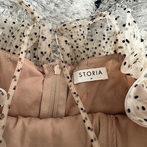 STORIA Tea Time Layered Mini Dress. Zipper closure, size M. Never worn. Nude color, super cute just have nowhere to wear it!