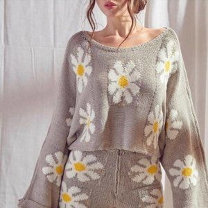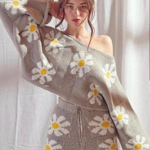 STORIA Light Gray & White Women's Cozy Cropped Daisy Sweater Size Small