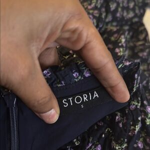 STORIA Navy Purple Boho Puff Sleeve Floral Tiered mini Dress Size small
