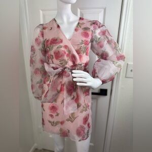 This elegant dress by Storia features a ruffled, tiered design in vibrant pink and orange hues, perfect for a wedding guest or cocktail occasion. The long bishop sleeves and v-neckline add a touch of sophistication, while the sheath style ensures a flattering fit. Crafted with attention to detail, this dress combines style and comfort effortlessly.