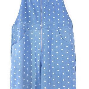 STORIA Polka Dot Denim Overalls Ankle Cropped Jumpsuit Boho Patch Pocket Small