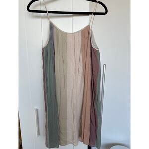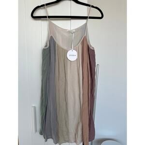 STORIA Women Mini Dress Multicolor Neutrals Trapeze Stripe, NWT, Size M