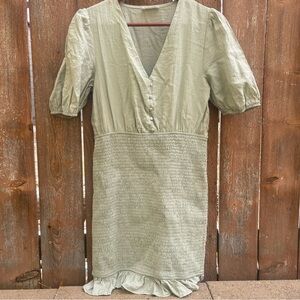 STORIA Women’s Pale Green Smocked Fitted Dress Mini Size Large