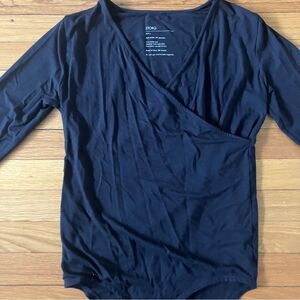 STORQ Black Wrap V-Neck Basic Solid Neutral Maternity Bodysuit Size 2 Small