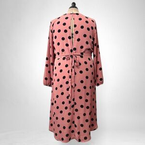 STORY ON Mauve Pink Polka Dot Long Puff Sleeve Wrap Dress, 3XL