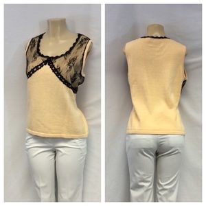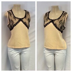STORYBOOK KIDS Lovely Sweater NWT, with lace bodice, Size M, 55% ramie, 45% cotton, exclusive of trimmings, hand wash. Approximate measurements are 21" bust laying flat, 23" shoulder to hem. 0292