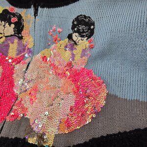 STORYBOOK KNITS Flamenco Dancers In Pink Cardigan Size L Women's Sequin Sweater