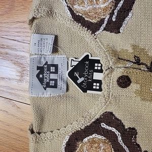 Round neck sweater with brown roses and pretty detailed beaded buttons.