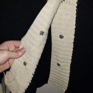 STORYBOOK KNITS BLACK AMD IVORY CREAM SNAP FRONT SWEATER CARDIGAN SIZE S…