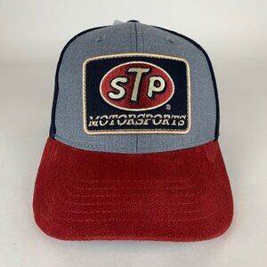 STP Motorsports Mens Gray Navy Blue Red Snapback Trucker Hat New
