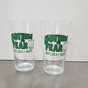 2 ST PATRICK'S DAY 16oz GLASS IRISH SHAMROCK Nothing To Fear But Lack Of Beer
