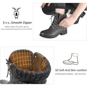 STQ Women's Grey Synthetic Side Zipper Combat Boots Lace up Ankle Booties