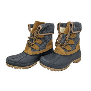 Elevate your winter fashion game with these STQ Women's Winter Duck Boots. Featuring a stylish Argyle/Diamond pattern in gray, these boots are perfect for any winter outfit. The boots are designed with a waterproof and water-resistant leather upper material, making them perfect for any snowy or wet conditions. The boots come in a size 10 and are lined with insulation to keep your feet warm all winter long. The boots also feature a sturdy and comfortable design, making them perfect for any winter activity. Don't let the cold weather stop you from looking your best this winter, add these STQ Women's Winter Duck Boots to your shoe collection today.