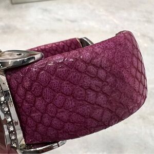 Black and raspberry cuffs have a crystal embellished accent around the face