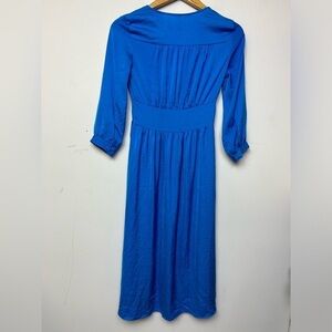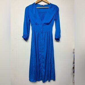 STRADIVARIUS BLUE SILKY SATIN BUTTON DOWN MIDI DRESS SIZE XS