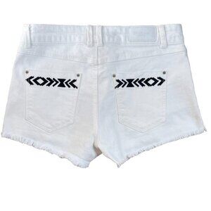STRADIVARIUS DENIM Aztec Embroidered Frayed Hem White Jean Shorts - Size 2