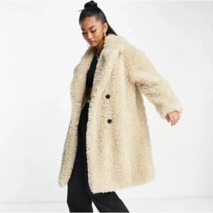 STRADIVARIUS DOUBLE BUTTON TEDDY COAT IN PUTTY-NEUTRAL sz M