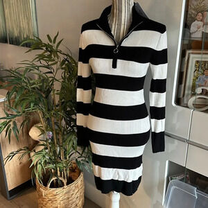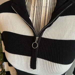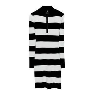STRADIVARIUS | Navy/Ecru | STRIPED KNIT DRESS WITH ZIP