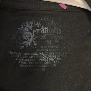STRANDED BRAND…BLACK L/S TEE SHIRT WITH GRAPHIC DESIGN ON BACK AND ON CHEST