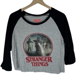 STRANGER THINGS Crop Top Graphic Baseball T Shirt 3/4 Sleeves Friends Don’t Lie Size Large