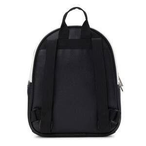 Exterior details: Pebbled finish with contrast prints; front zip pocket