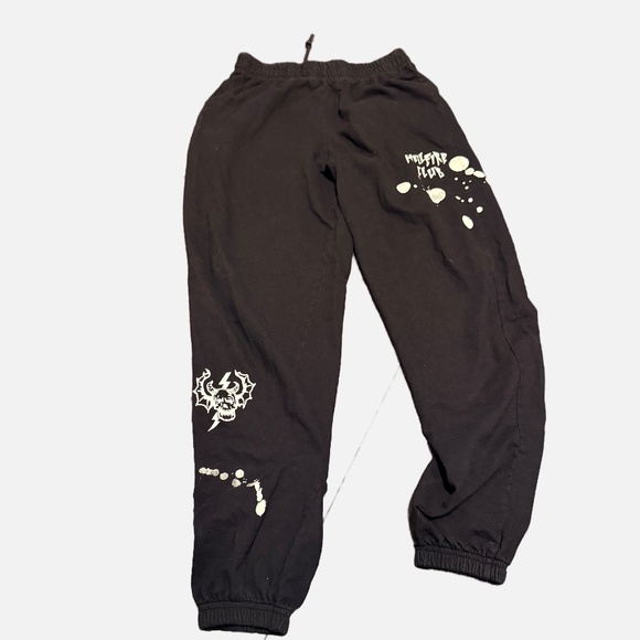 These are a gently used pair of Pacsun Stranger things hellfire club black jogger sweatpants. They are 100% cotton, with drawstring waist, with hellfire club on the leg upper leg and symbols on the right calf. Elastic ankles and super soft. Size medium in great condition. #pacsunsweatpants #strangerthingspacsun #strangerthingshellfiresweatpants #hellfireclubsweatpants #strangerthingsclothing